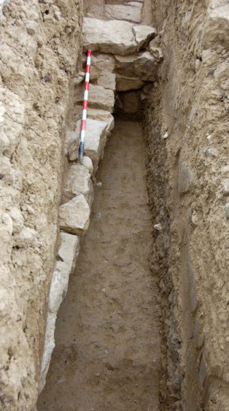 Posteriormente, ya en fase de construcción, se efectuaron sondeos mecánicos previos a la apertura de la zanja en previsión de que aparecieran vestigios en aquellas áreas de interés arqueológico que, sin embargo, no eran tan evidentes en superficie. Los sondeos, propuestos por Labrys y aprobados por los técnicos de Cultura de la administración navarra como medidas correctoras, permitieron liberar de carga arqueológica los tramos de la traza afectados.
